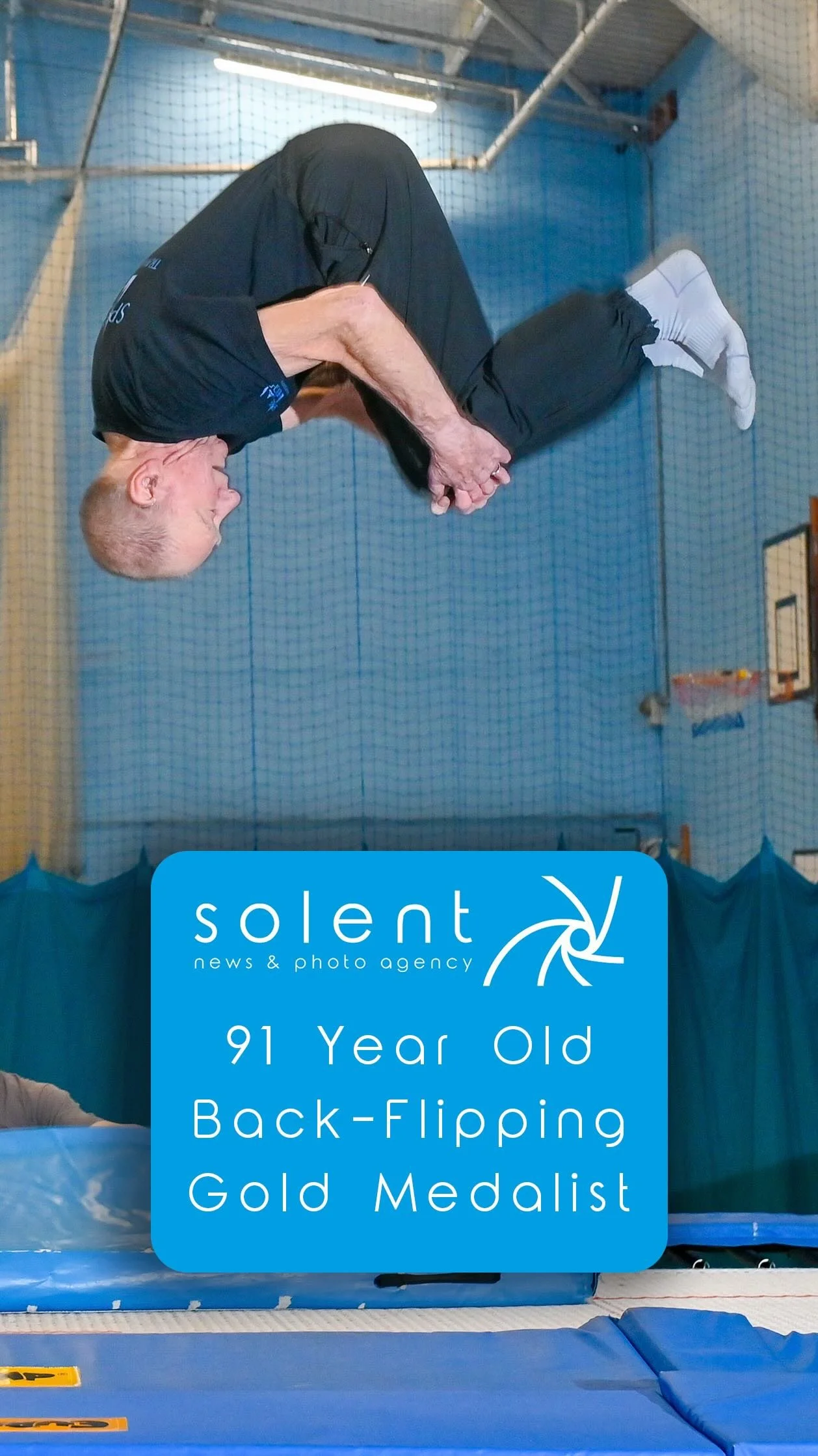 FLIPPING INCREDIBLE! A British champion gymnast has made a winning comeback to trampolining 40 years after his last competition - at the age of 91. Backflipping great-grandfather Peter Quinney proved age is just a number as he won two gold medals at a trampolining competition.
